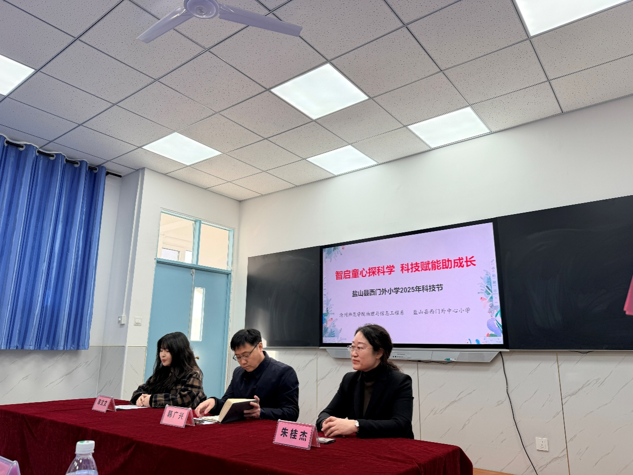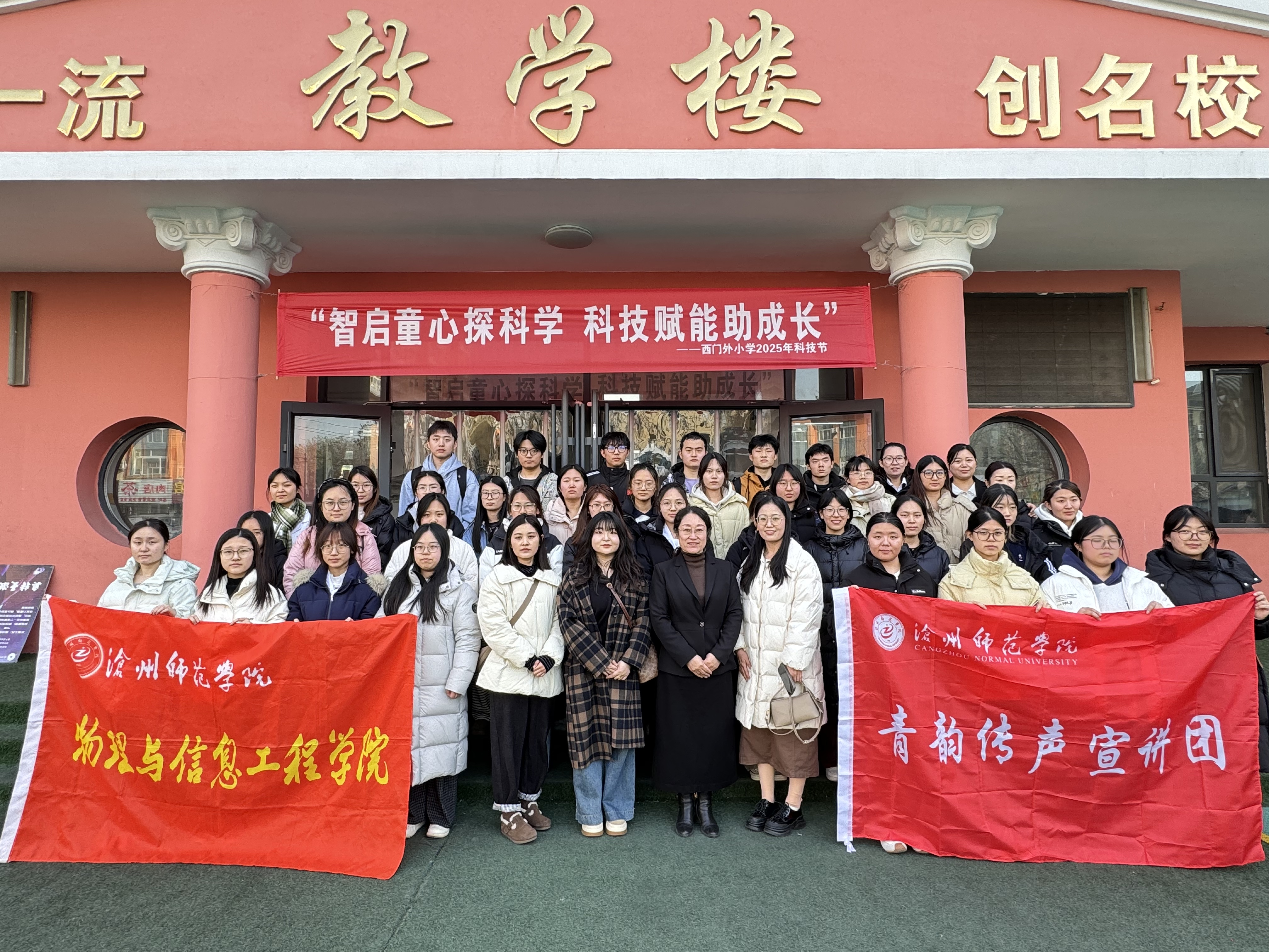 为深入弘扬科学精神、扎实普及科学知识,积极响应“科普进校园”号召,搭建高校与小学间常态化科普桥梁,物理与信息工程学院于2025年11月28日开展盐山县西门外小学“智启童心探科学 科技赋能助成长”科技节见面会。参加本次活动的人员包括盐山县教育局局长韩广兴、西门外小学校长朱桂杰,以及青韵传声宣讲团指导老师陈文文、胡晴晴、苗静老师和宣讲团志愿者。