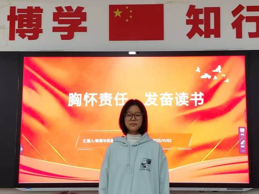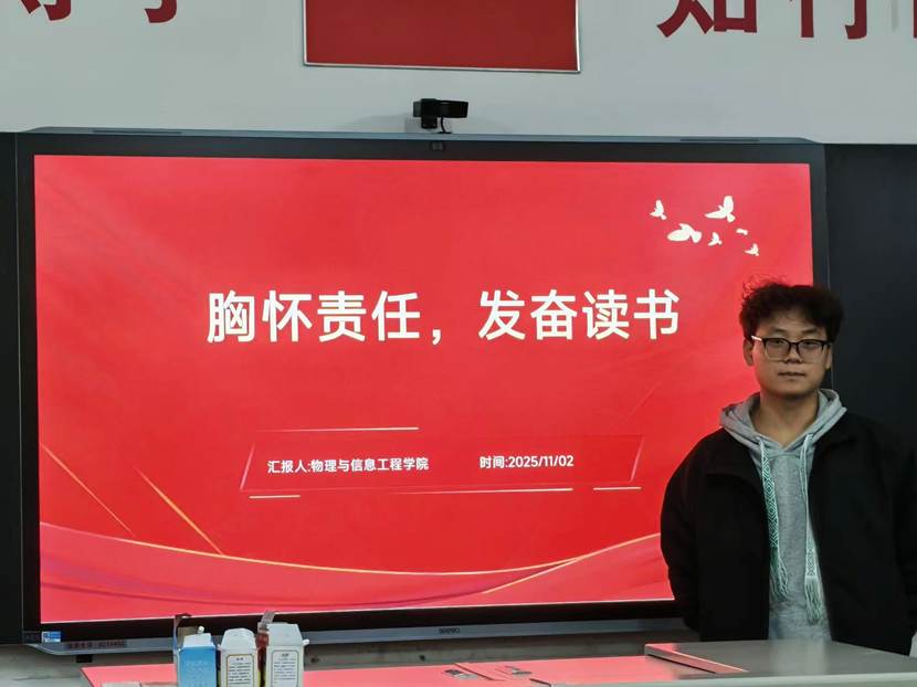 为引导同学们树立正确读书观,明确新时代青年责任担当,将读书学习与民族复兴使命紧密结合,物理与信息工程学院于2025年11月2日晚上7:00在第八阶梯教室、第九阶梯教室、第七平面教室、第十二阶梯教室同步开展“胸怀责任,发奋读书”主题团课,主持人为关思雯、李佳旭、李梦含、张宇铄,参加人员为物理与信息工程学院2025级全体同学。