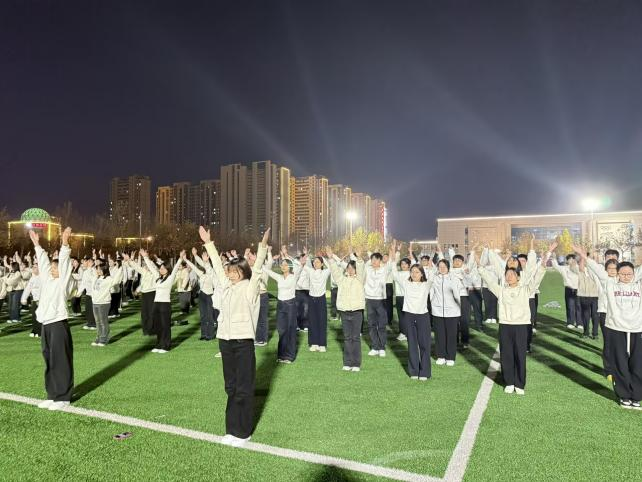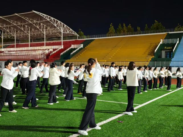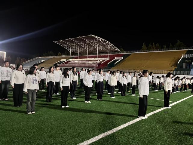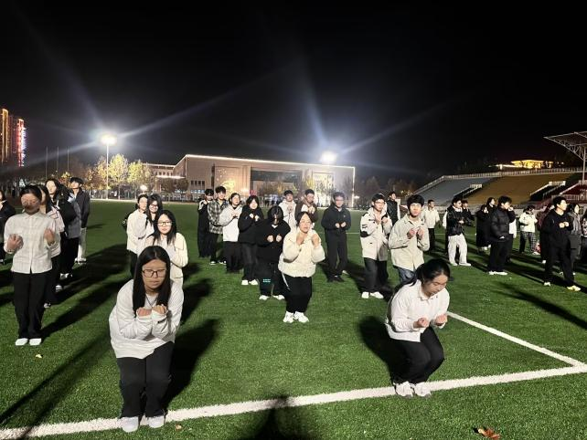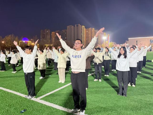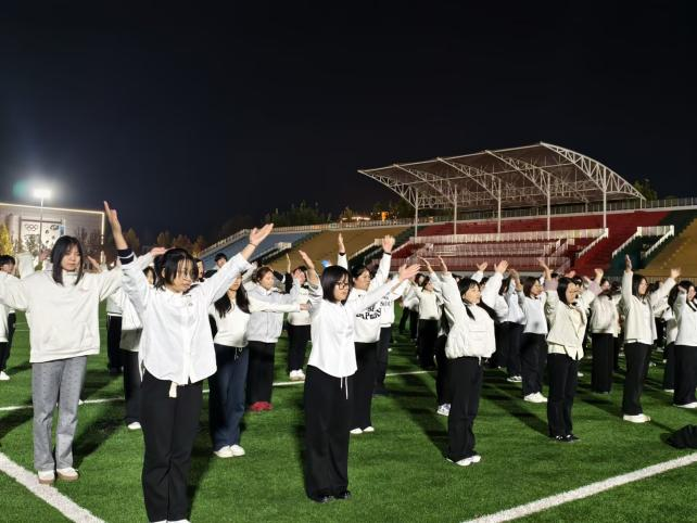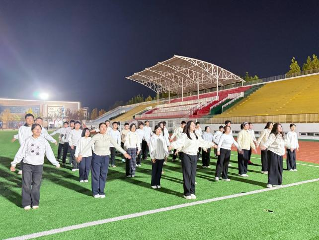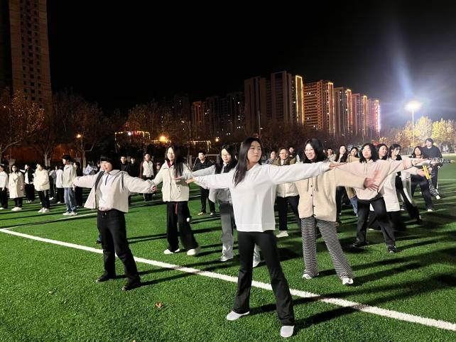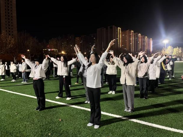 为丰富同学们的校园文化生活,激发大家的青春活力,增强身体素质,培养集体荣誉感与团队协作精神,物理与信息工程学院于2025年11月13日晚上6:30,在大操场举办“青春律动,活力绽放”课间操比赛,评审人员为王雨泽、郝景琦、武胜旭、孙佳怡、张子涵、李冬莹,参加人员为物理与信息工程学院2025级全体同学。
