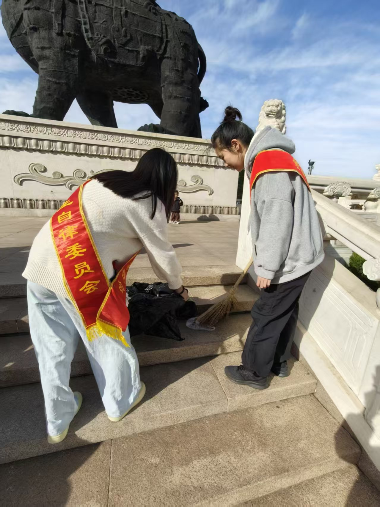活动现场,志愿者们热情高涨、分工协作,全身心投入到清洁工作中。大家各司其职,分别对路面广场、公共设施及隐蔽区域进行全面清理,不放过任何卫生死角,用认真负责的态度为改善环境面貌贡献力量。同学们不畏繁琐、认真负责,用双手一点点改善着周边环境,每一个忙碌的身影都成为校园中一道亮丽的风景线,充分展现了同学们的责任担当与志愿风采。