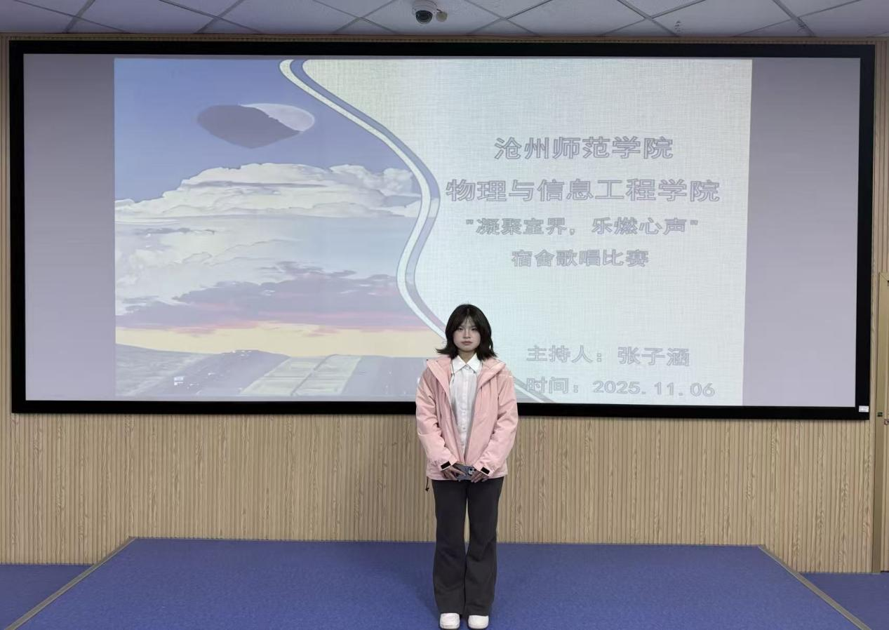 为丰富同学们的课余文化生活,增强宿舍凝聚力,营造积极向上、团结友爱的校园氛围,物理与信息工程学院于2025年11月6日晚上8:00,在理科楼二楼第二阶梯教室举办“凝聚室界,乐燃心声”宿舍音乐大赛,主持人为张子涵,评审人员为王雨泽、田景飒、王韵涵、王彤伟,共有我院7个宿舍参赛,最终4个宿舍获得奖项。