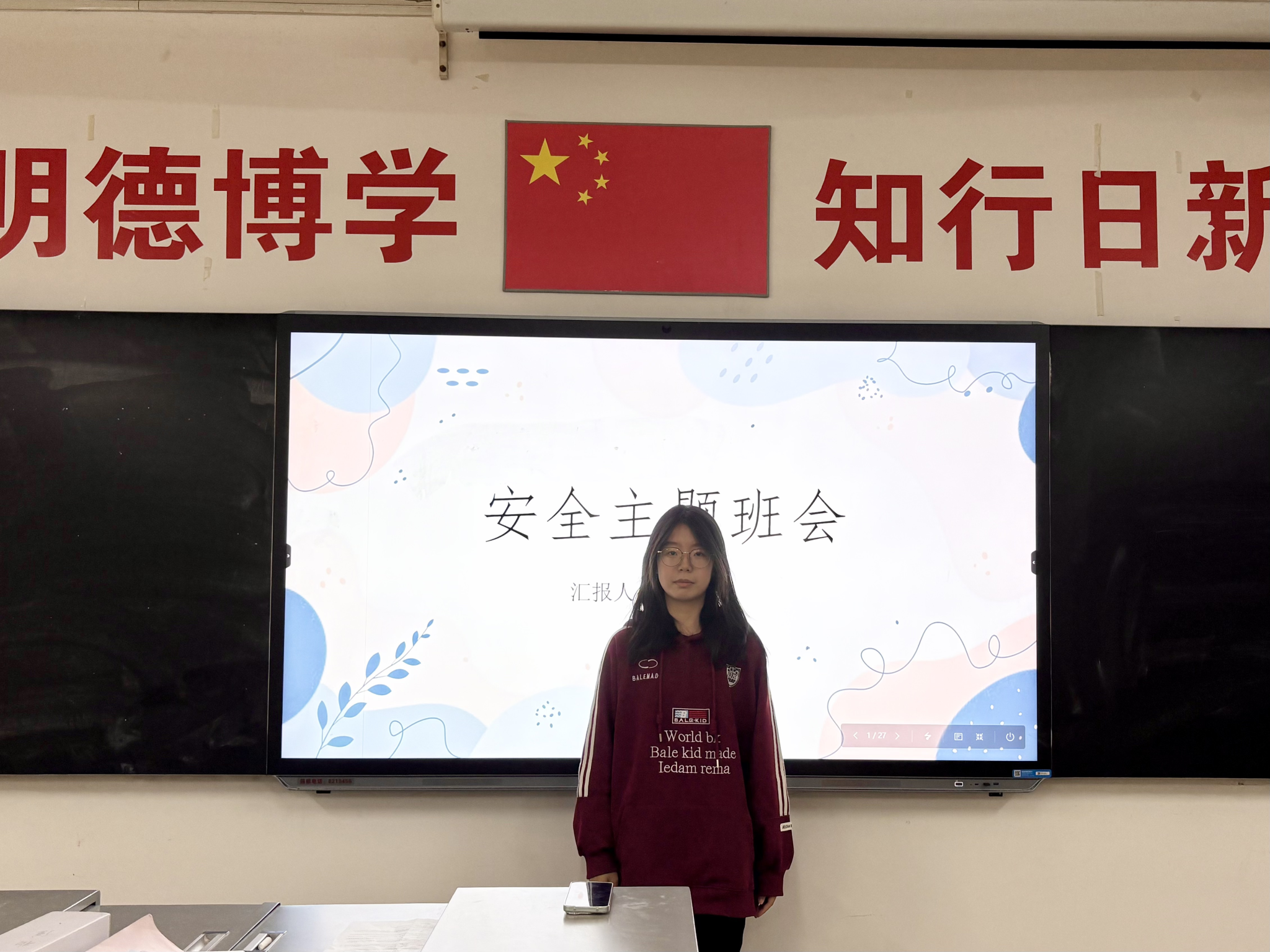 会上,王敬然同学首先强调到人身与财产安全的重要性,明确安全是同学们校园生活的基本保障,提醒大家在日常学习与生活中注意防火、防盗、防诈骗,不轻信陌生人,不随意透露个人信息。随后,她提醒同学们要重视宿舍用电安全,严禁使用违规电器,离开宿舍及时断电,养成安全用电的好习惯。接着,王敬然同学结合近期发生的安全案例,为同学们讲解了交通安全、食品安全以及网络言行规范,帮助大家树立全面的安全观,做到防患于未然。最后,她重点强调到校纪校规,要求同学们严格遵守学校各项安全管理规定,不晚归、不夜不归宿,遇到突发情况第一时间报告老师,共同维护校园安全秩序。