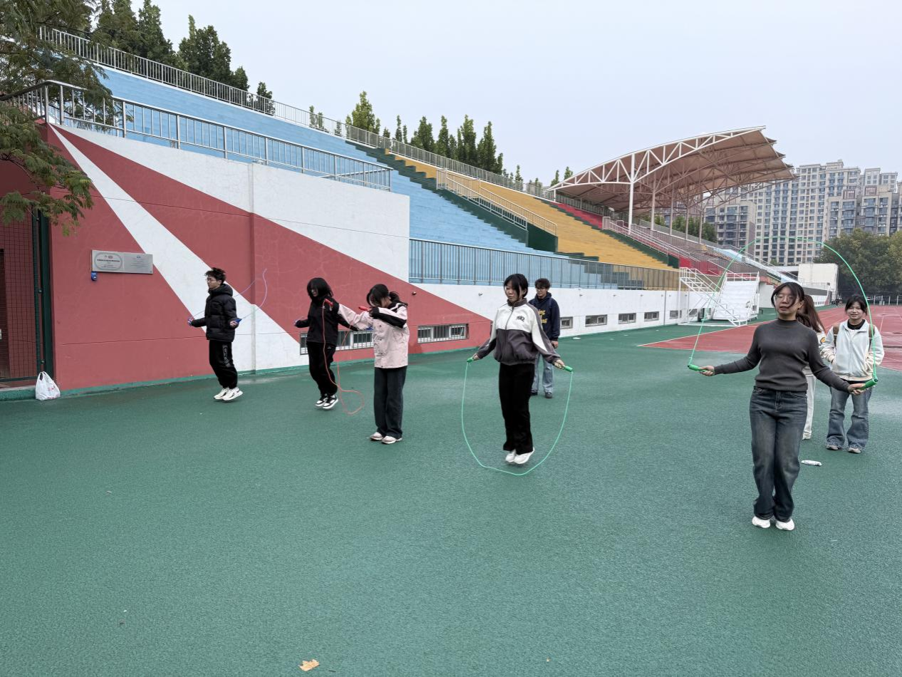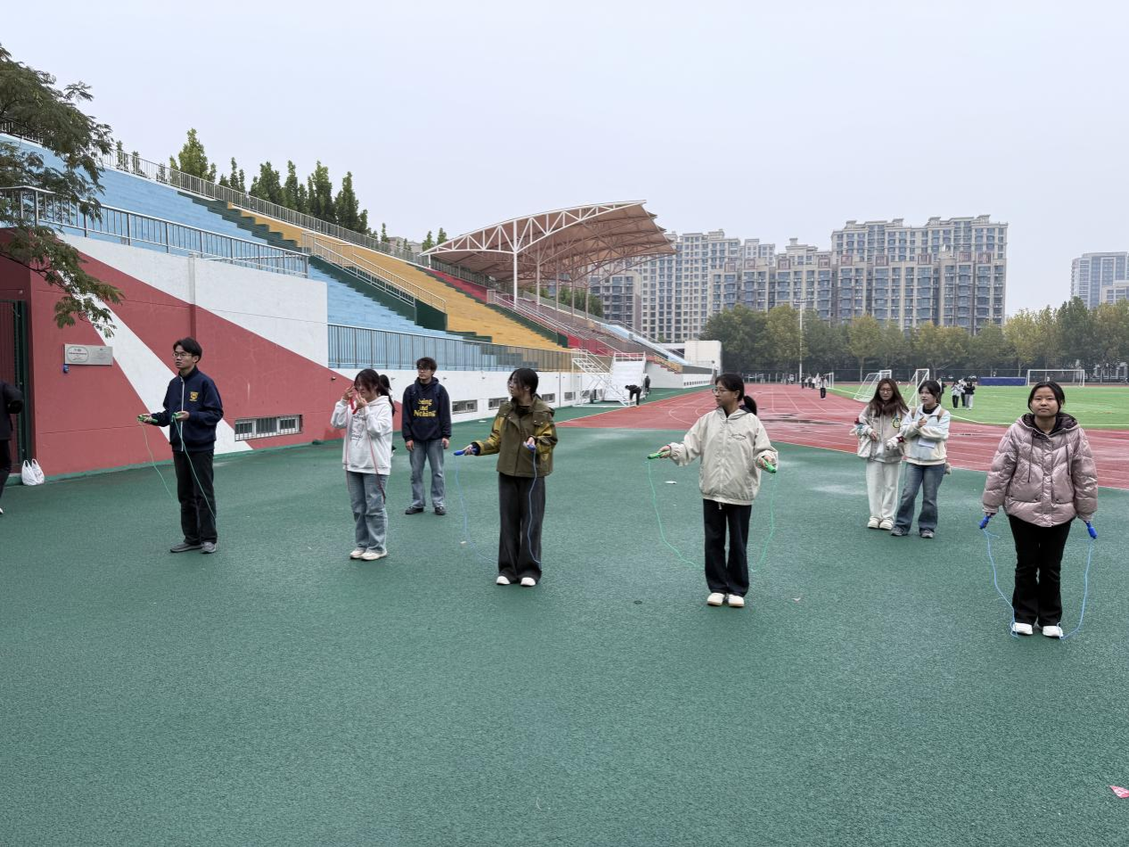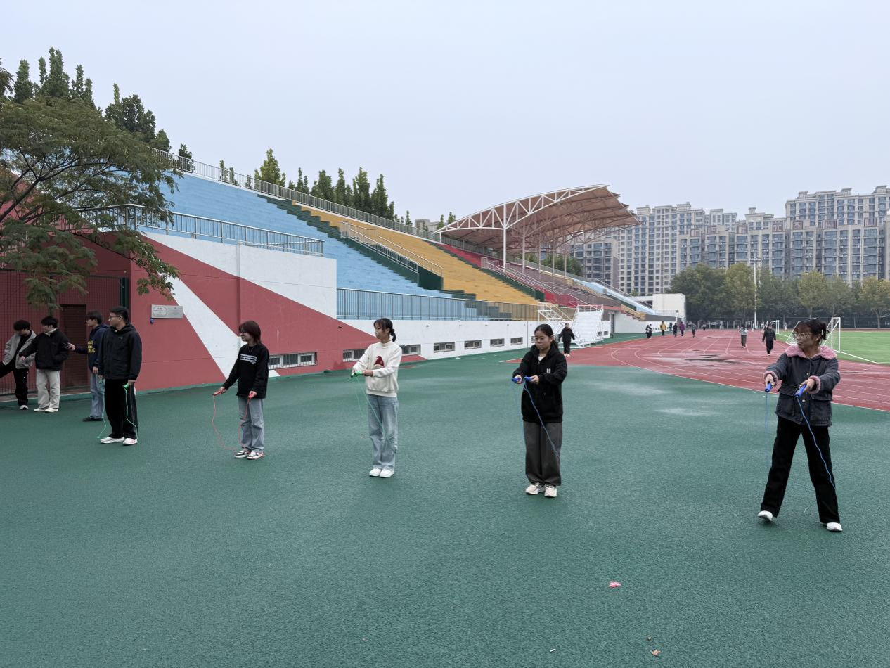 为丰富同学们的课余生活,营造积极健康的校园氛围,让大家在学习之余感受运动的乐趣,物理与信息工程学院于2025年10月23日上午10:00,在田径场举办“跃动绳间,青春飞扬”跳绳比赛,裁判人员为郝景琦、武胜旭、苗皓冉、张子涵、孙佳怡、刘欣然,参加人员为物理与信息工程学院部分学生。