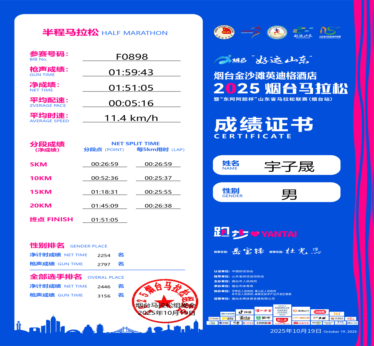 大一上半学期,宇子晟同学怀着锻炼身体的初心,开启了规律跑步的旅程。起初仅为日常基础运动,直到大一寒假,在朋友的鼓励下,2025年4月,宇子晟同学首次参与半程马拉松赛事。赛前,他曾因担心“跑不下来”而忐忑不安,但踏上赛道后,内心的顾虑逐渐消散,赛后才发现,这件事并未如预想中那般困难。从此,他对奔跑的热爱愈发浓厚,暑假期间主动制定专属训练计划,一步步突破自我极限。2025年10月,他再次站上赛道,参与个人的第二场马拉松赛事。此次比赛中,他的成绩大幅提升了十一分钟,不仅锤炼了强健的体魄,更让日常学习生活始终保持饱满的精神状态。