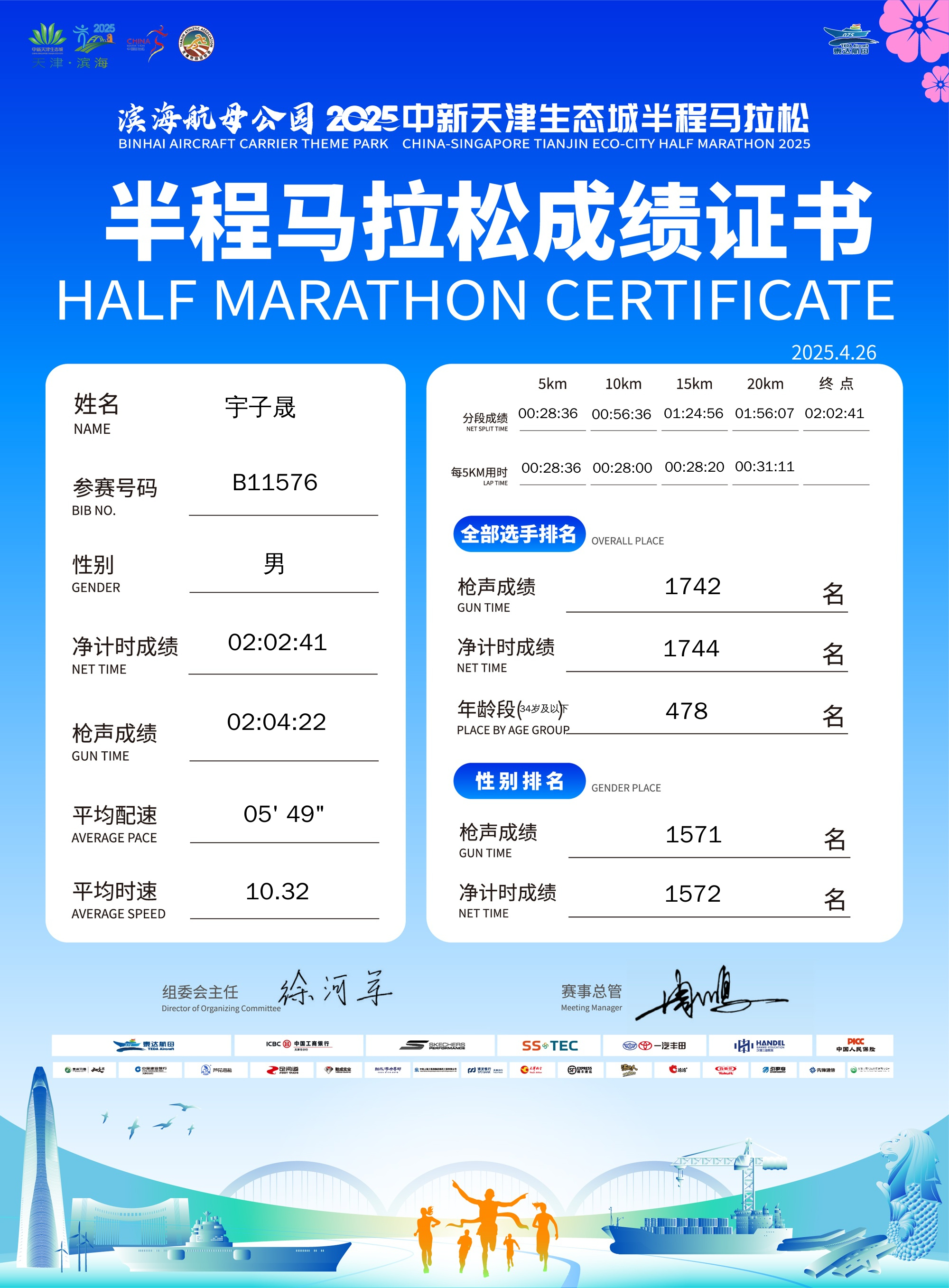 ——物理与信息工程学院宇子晟同学参与半程马拉松赛事